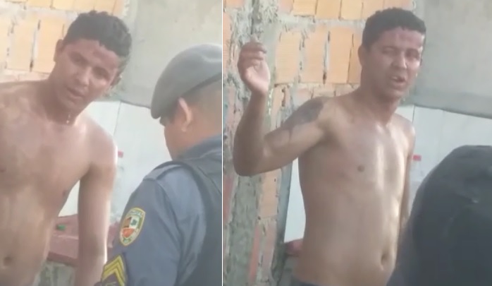 A Polícia Militar (PM) foi acionada, e ao chegar no local, encontrou o suspeito com várias escoriações e a arma do crime jogada em um terreno baldio.
