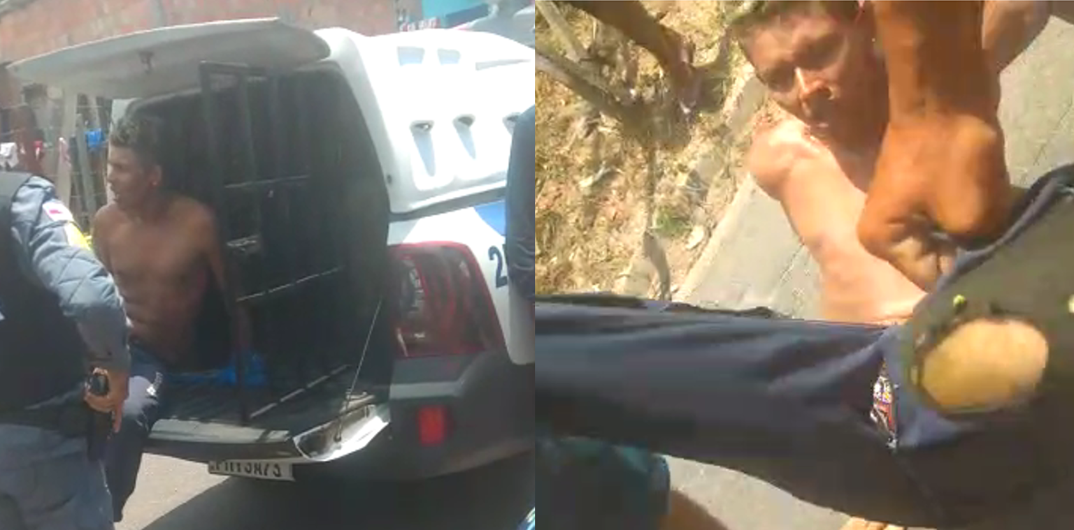 O vídeo mostra o momento em que o suspeito é arrastado por populares até a viatura da polícia militar. Segundo moradores, o homem usava tornozeleira eletrônica. Com a calça rasgada e aparentemente cansado, ele é colocado pelos militares no camburão da viatura e grita: “avisa a mamãe lá mano”.