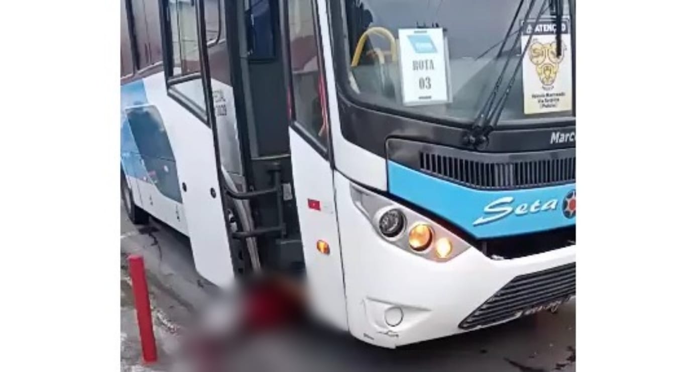 O piloto foi arrastado para debaixo do ônibus com a moto e morreu. O comparsa teve ferimentos mais leves e foi levado a uma unidade de saúde.