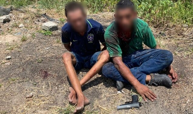 Os criminosos estavam com uma arma falsa que foi apreendida pela polícia. Os suspeitos só não chegaram a morrer porque a Polícia Militar chegou bem na hora.