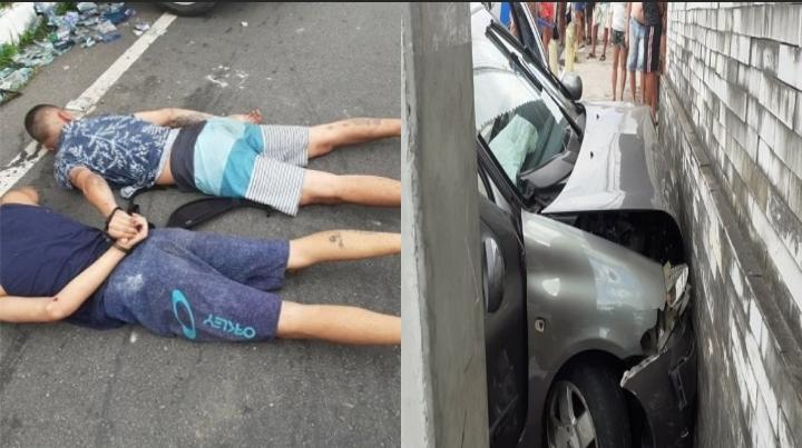 MANAUS-AM| Na manhã desta segunda-feira (16), dois assaltantes foram presos após baterem o carro em que estavam, em um muro durante um perseguição policial no bairro Tancredo Neves, Zona Leste de Manaus.