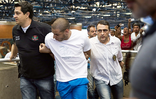 Barreiras metálicas foram montadas para afastar as pessoas. Um grupo de policiais do GOE (Grupo de Operações Especiais) foi acionado. Um deles chegou a atirar para cima. Segundo a Secretaria da Segurança, o disparo foi com munição não letal, “cuja função é, com o barulho, impedir a confusão generalizada”. Ninguém se feriu, diz a pasta.”Até os presos não gostam desse tipo de gente. Eles vão ter que ficar em um lugar meio reservado. A gente vai avisar o sistema carcerário sobre isso”, disse o delegado Oswaldo Nico Gonçalves, um dos responsáveis pelo caso. A polícia aguarda receber oficialmente as imagens da agressão para concluir o inquérito. Os policiais irão pedir a mudança de prisão temporária para preventiva (sem prazo certo para a soltura).