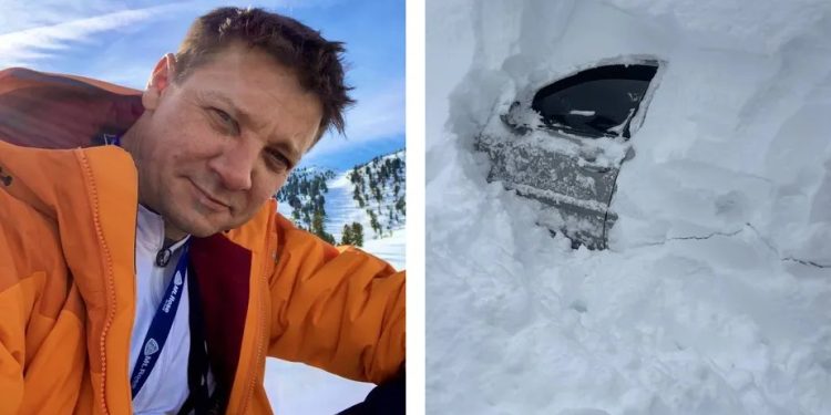 Há quase três semanas, Renner compartilhou uma foto de um carro quase totalmente coberto pela neve na região do Lago Tahoe, no Oeste Americano.