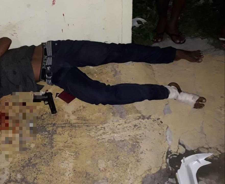 Mesmo baleado o comparsa conseguiu fugir. A ocorrência foi encaminhada para a Delegacia Especializada em Homicídios e Sequestros (DEHS).