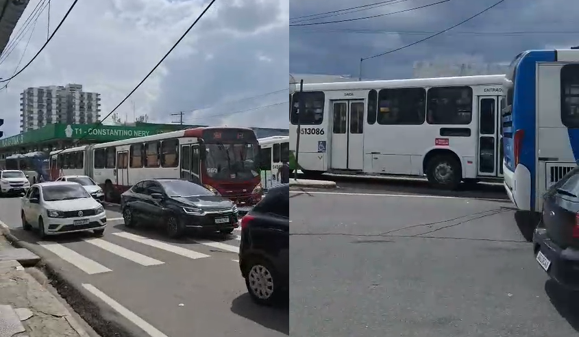 Um registro em vídeo, amplamente compartilhado nas redes sociais, mostra dezenas de ônibus parados e alinhados na Avenida Constantino Nery, próximo ao Terminal 1, com bloqueio parcial da via. Nas imagens, é possível ver motoristas em conversas enquanto aguardam solução para o impasse.