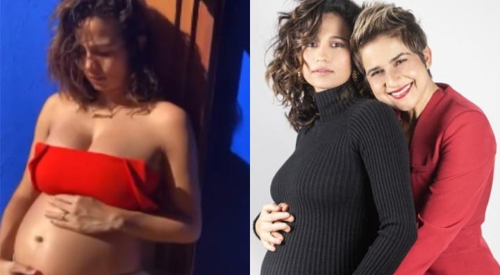 “Um segredo guardado com muito carinho! Somos quatro. Duas mães e duas filhas. Vem com a gente no Fantástico hoje!”, escreveu a atriz na legenda de um vídeo no qual deixa a barriga de gestante à mostra.