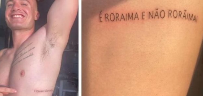 A nova tatuagem ‘É Roraima e não Rorãima’ viralizou nas redes. “Eu não sabia dessa treta até chegar aqui”, brinca Simon no Instagram.