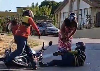 MANAUS - Um motoqueiro e uma garupa caíram na rua no Grande Vitória, Zona Leste de Manaus, enquanto um homem...