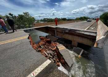PACARAIMA (RR) - O trecho da ponte que cedeu sobre o igarapé Aningal, no km 615 da BR-174, na manhã...