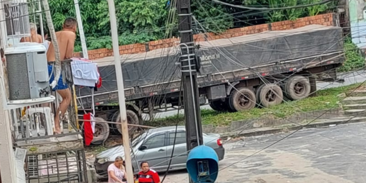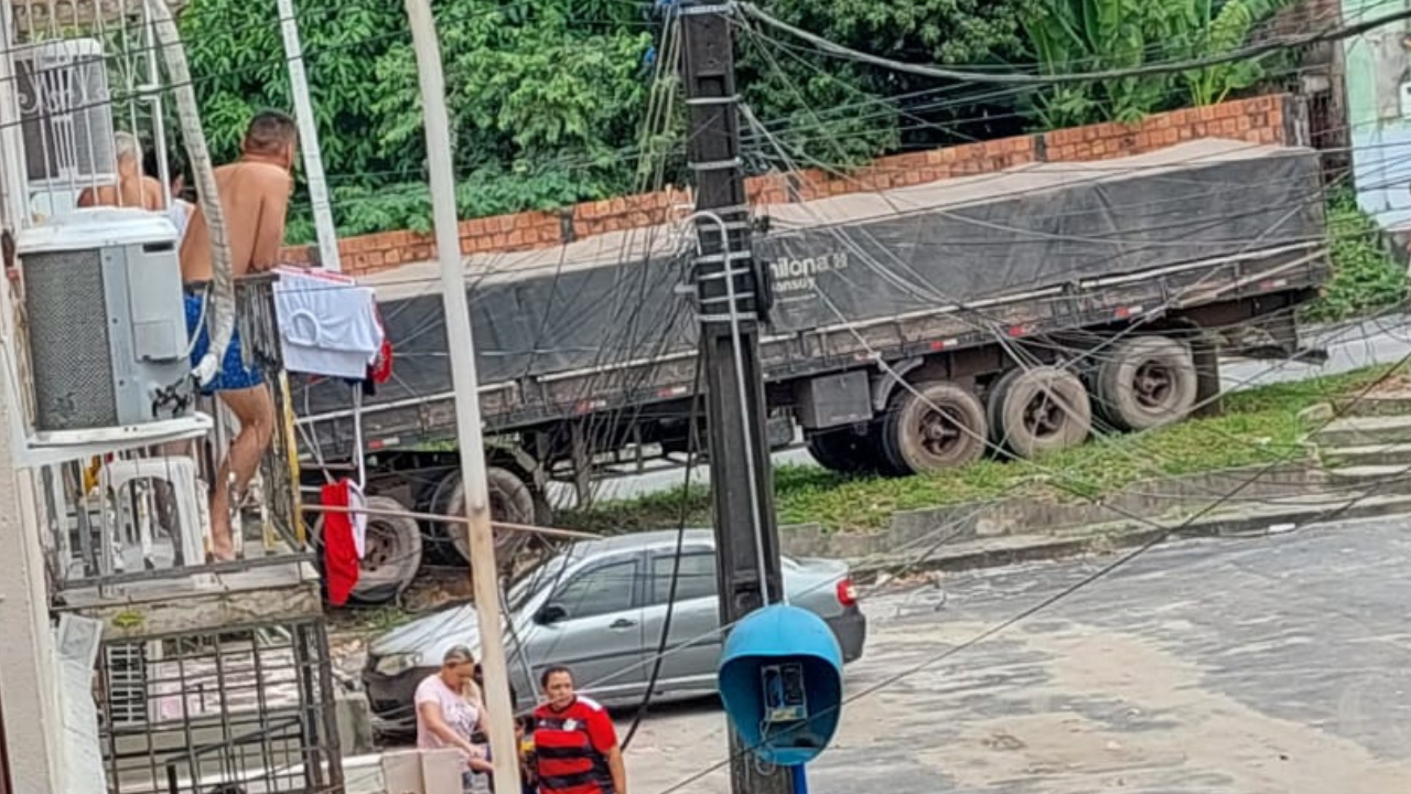 MANAUS (AM) – Moradores do bairro Parque das Laranjeiras, zona Centro-Sul, ficaram sem energia elétrica na tarde desta segunda-feira (5), após uma carreta desgovernada derrubar um poste de iluminação pública, o veículo também invadiu uma residência.