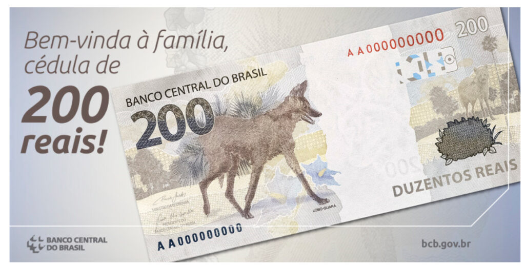 RIO DE JANEIRO | O Banco Central revelou nesta quarta-feira (2) a nova nota de 200 reais. Em tons de cinza e sépio, como o próprio Banco descreveu, a cédula veio estampada com a imagem do lobo- guará, como prometido. A cédula tem as mesmas dimensões que a nota de R$ 20, o que facilitou sua produção.