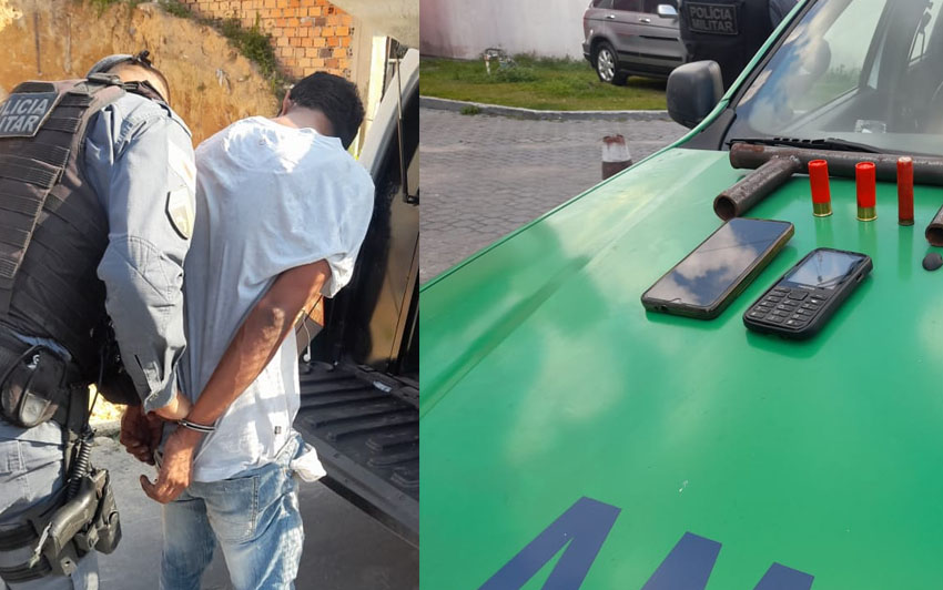 Com ele foi apreendida uma arma de fogo caseira com munições calibre 12, além de dois aparelhos celulares pertencente a duas das vítimas do assalto.Sandro foi encaminhado ao 6° Distrito Integrado de Polícia (DIP), onde foram adotados os procedimentos cabíveis.