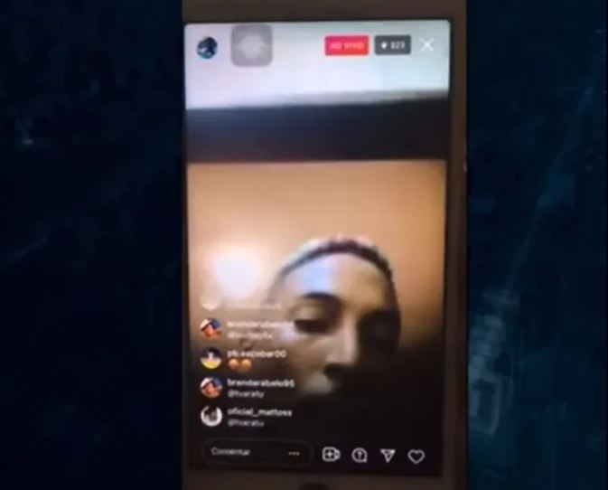 No vídeo transmitido pelo Instagram, é possível ver a refém mantida nos braços de um dos suspeitos, com uma arma apontada para a cabeça dentro da própria casa.