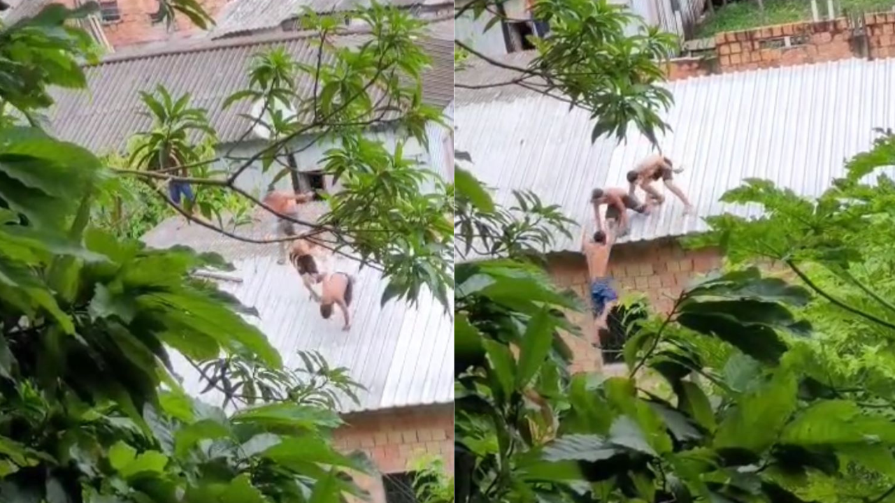 MANAUS (AM) – Um vídeo divulgado em grupos de mensagens na tarde desta terça-feira (20), mostra um homem sendo agredido no telhado de uma casa no bairro Redenção, zona Centro-Oeste de Manaus.