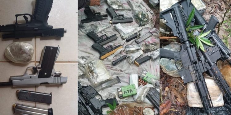 MANAUS – A bandidagem de Manaus conseguiu esconder até ontem (26), um arsenal para a guerra, que foi enterrado no Viver Melhor, em Manaus. Eram seis fuzis, sete pistolas, dois revólveres calibre 38, e 100 quilos de drogas. Tudo foi apreendido.