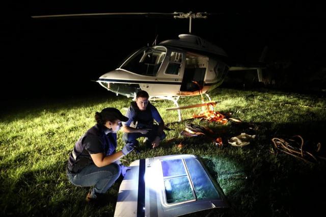 Os policiais a bordo dos helicópteros avistaram a aeronave roubada no solo, ainda dentro do município de Triunfo. O aparelho passa por perícia. O helicóptero roubado foi encontrado por volta das 15h40, sem as portas, alguns bancos e com cordas amarradas em sua fuselagem. Conforme o depoimento do piloto rendido, depois de pousarem, um dos homens armados se dirigiu a ele com o rosto coberto e fez perguntas técnicas sobre a aeronave.