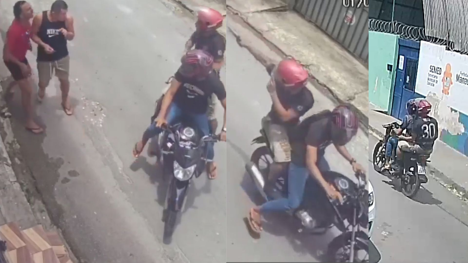 Um vídeo registrado pelo circuito de segurança de uma residência registrou o momento em que dois amigos caminham tranquilamente pela via, quando são abordados por uma dupla em uma motocicleta.