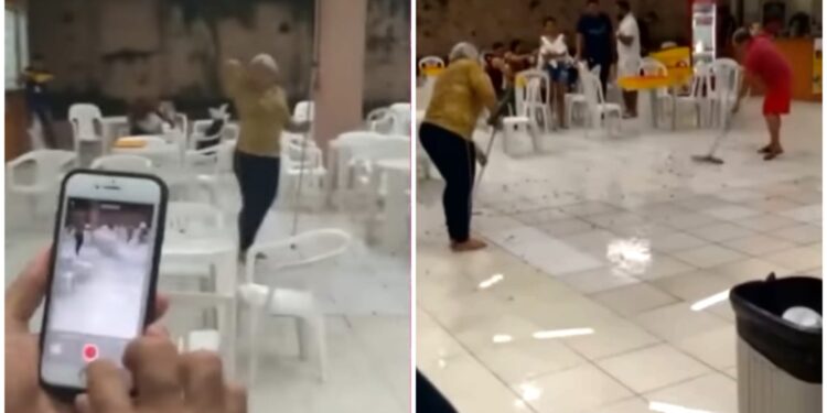 Nas filmagens, é possível ouvir o grito dos presentes, que por pouco não foram também atacados.