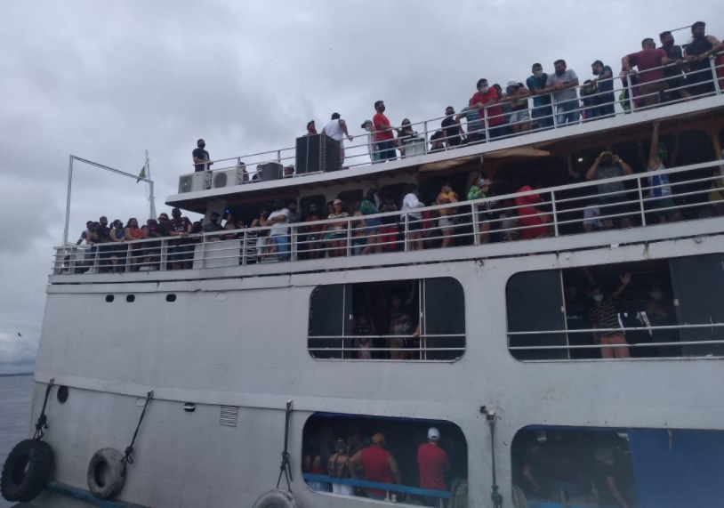MANAUS, AM – Manaus registra neste domingo (18) mais uma daquelas cenas impressionantes. Um barco de passeio estava pronto para deixar o cais da Balsa Amarela, no Centro, com cerca de 700 pessoas aglomeradas, quando fiscais da Arsepam chegaram e impediram mais um ato irresponsável em plena pandemia.