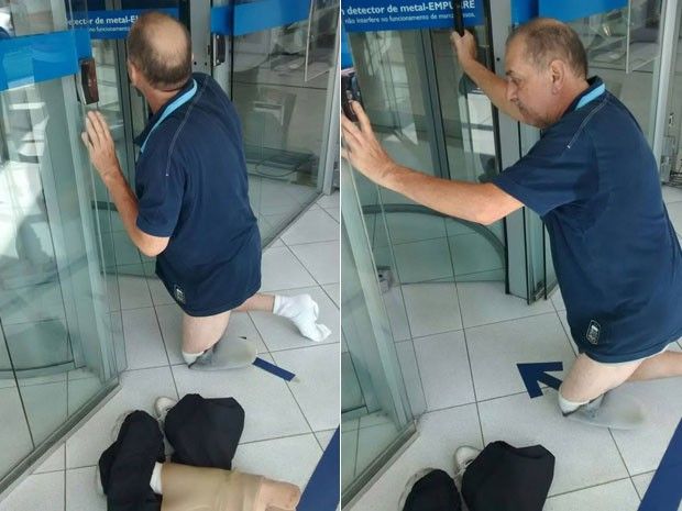 O homem – que disse não ser cliente da agência em questão, mas já teria ido ao local pelo menos outras quatro vezes – contou que foi ao banco com a esposa e sempre conseguiu entrar após explicar que usava prótese. Dessa vez, porém, o segurança e uma gerente não deram autorização para que entrasse. “Minha esposa levantou minha calça, mostrou a prótese, explicou que eu sou amputado. Mas eles disseram que não me conheciam e não iam abrir”, acrescentou.
