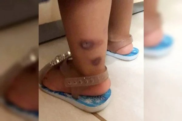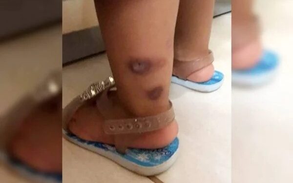 Após avaliação médica, o profissional que atendeu a menina na unidade de saúde, no entanto, atestou que as marcas na pele da criança são de possíveis queimaduras e pancadas. Ela foi encaminhada para cuidados da família materna e está sob a guarda do avô.