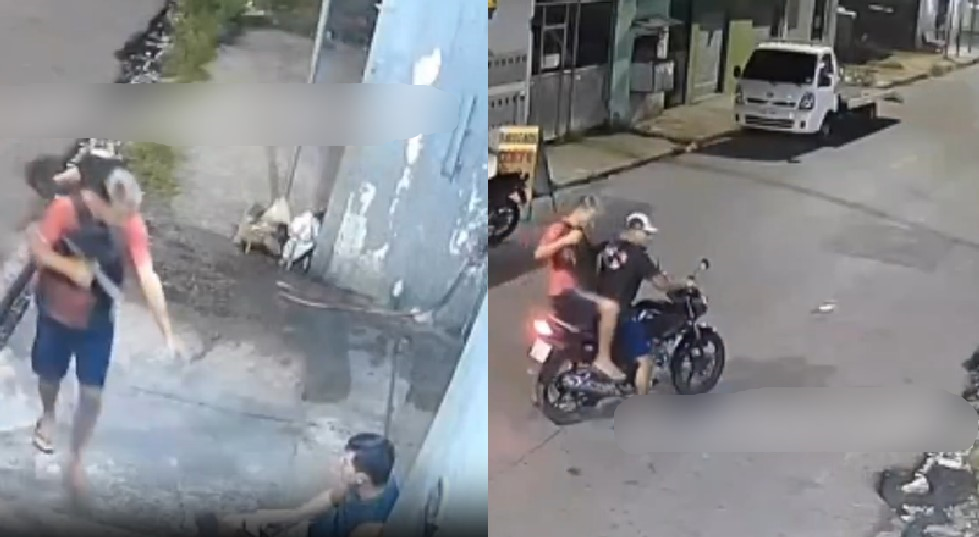 Nas imagens, um dos assaltantes foi identificado como “Bené” e está na garupa do comparsa. Ele aponta uma arma de fabricação caseira e ameaça atirar nas pessoas enquanto leva os celulares de dois jovens que estão na frente de um comércio.
