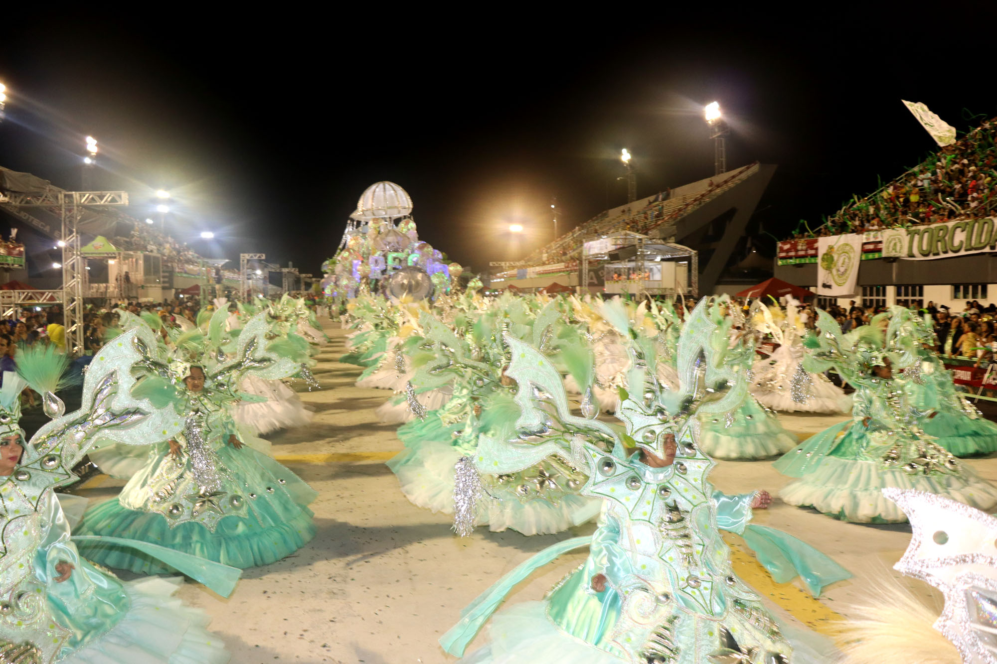 A escola do bairro Aparecida, que tem 43 anos de fundação, levou para avenida 80 baianas, 230 ritmistas na bateria, 15 componentes na comissão de frente acompanhados de um módulo alegórico, além de duas alas coreografadas e 24 alas comerciais.