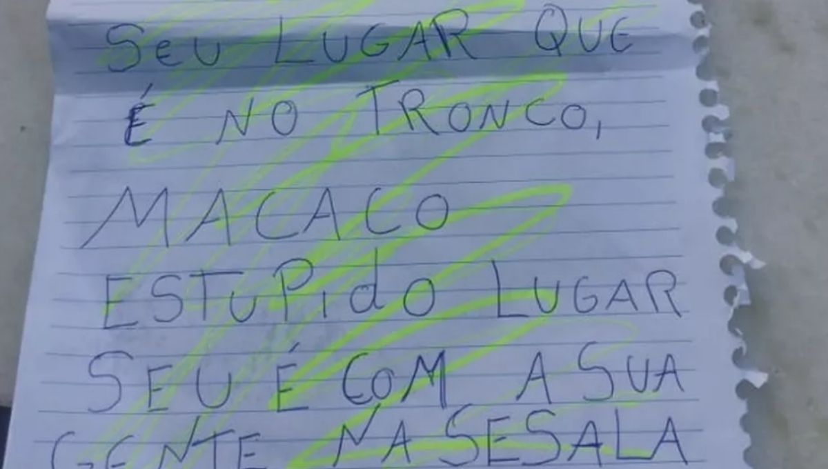 Achando que já estava tudo bem, no sábado (23), ao voltar para o condomínio para pegar seus pertences e despedir-se de uma moradora, encontrou mais bilhetes com as ofensas.