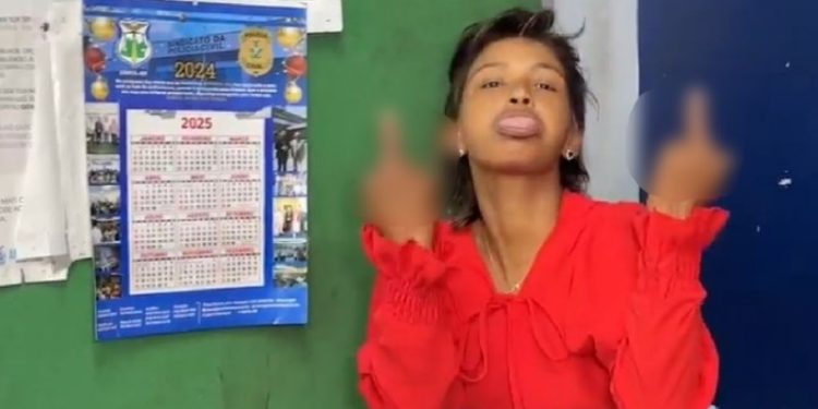 MANAUS – Uma blindada debochou na delegacia após ser preso furtando bebidas, perfumes e cosméticos no Supermercado Nova Era que fica na Avenida Torquato Tapajós, bairro da Paz, Zona Centro-Oeste de Manaus. Pouco preocupada com a imagem, ela ainda estava usando peruca como disfarce.