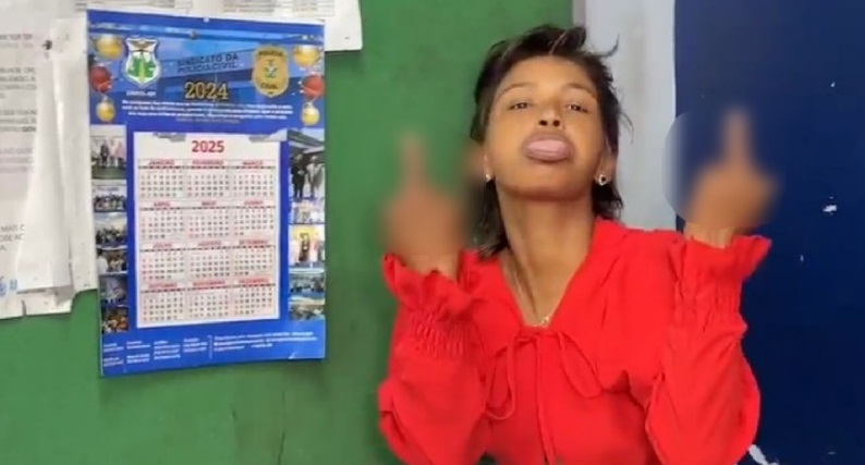 Quando a equipe da na 10ª Companhia Interativa Comunitária (Cicom) levou a mulher para o 19º Distrito Integrado de Polícia, ele resolver fazer pose..