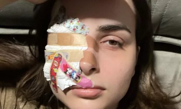 Depois do acidente, a influenciadora ficou sem conseguir abrir os dois olhos.