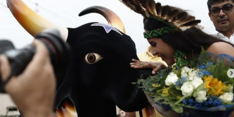 PARINTINS – Isabelle mostrou em Parintins, neste domingo, que está acima da rivalidade entre Garantido e Caprichoso. Ainda que siga no Boi Vermelho, ela recebeu uma homenagem do Boi Caprichoso, que durante todo o BBB pediu apoio à cunhã do contrário.