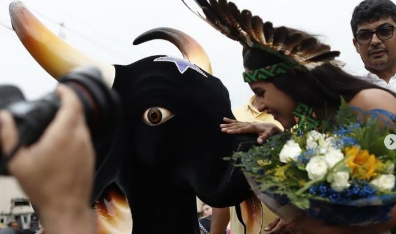 PARINTINS – Isabelle mostrou em Parintins, neste domingo, que está acima da rivalidade entre Garantido e Caprichoso. Ainda que siga no Boi Vermelho, ela recebeu uma homenagem do Boi Caprichoso, que durante todo o BBB pediu apoio à cunhã do contrário.