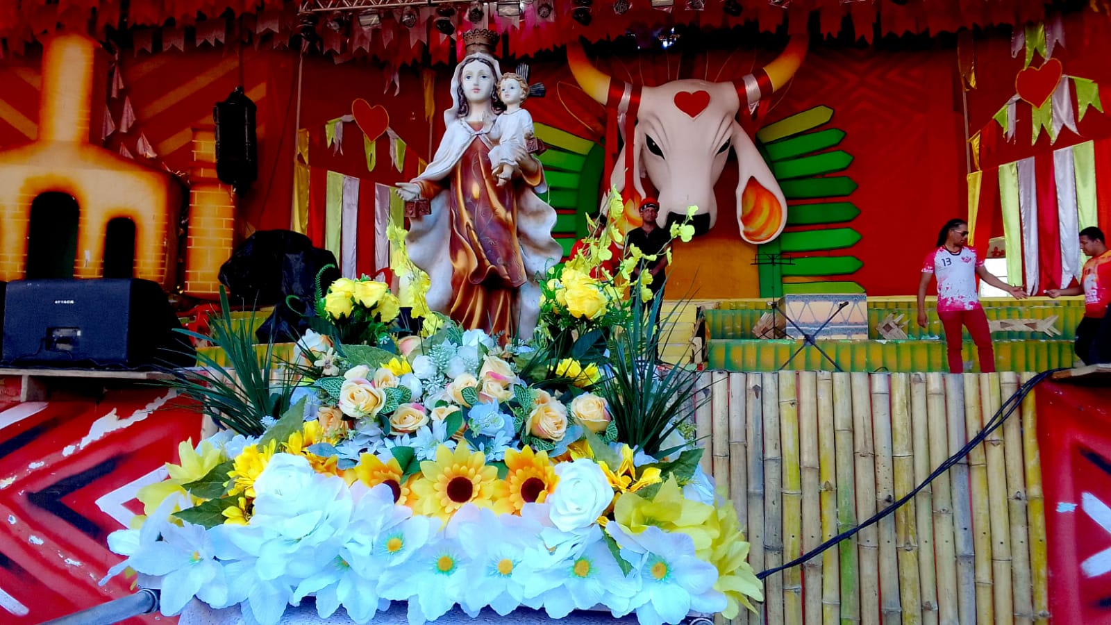 “A festa de Nossa Senhora do Carmo é sempre um marco histórico dentro do Festival de Parintins. Existem muitos devotos que trabalham no galpão e demais colaboradores, então, é sempre bom estreitar esses laços. Maria passa na frente e conduz o caminho. É sempre bom estarmos aqui com os trabalhadores, junto a diretoria do Boi Garantido acolhendo a todos nesse momento de devoção”, exalta o pároco.
