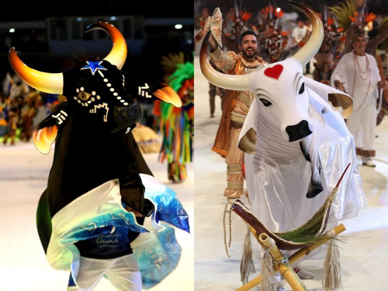 Rivais dentro do bumbódromo do Festival de Parintins, no Amazonas, as agremiações pedem recursos para ajudar os indígenas.