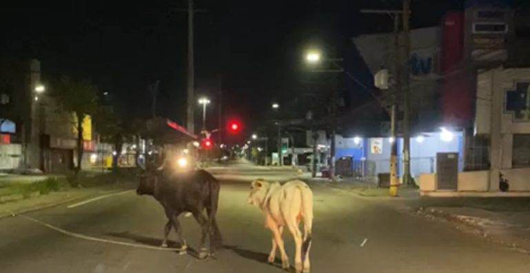 MANAUS (AM) – Uma situação inusitada foi vista nas redes sociais, em vídeo que passou a circular nesta quarta-feira (12). Nele, dois bois são vistos dando um “rolezinho” pela avenida Grande Circular, na Zona Leste da cidade, aproveitando o trânsito quase inexistente da madrugada.