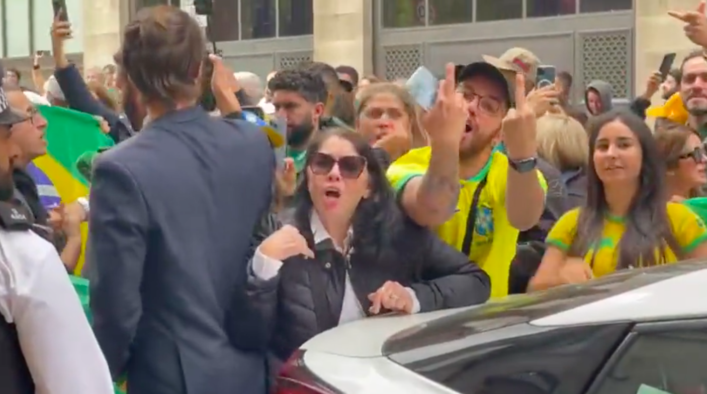 O presidente, candidato à reeleição, foi recebido por brasileiros apoiadores no país quando cerca de dez ambientalistas, com cartazes que acusavam Bolsonaro de “eco-criminoso”, passaram a protestar. A polícia então cercou os manifestantes que eram xingados por bolsonaristas que gritaram frases contra o ex-presidente Luiz Inácio Lula da Silva.