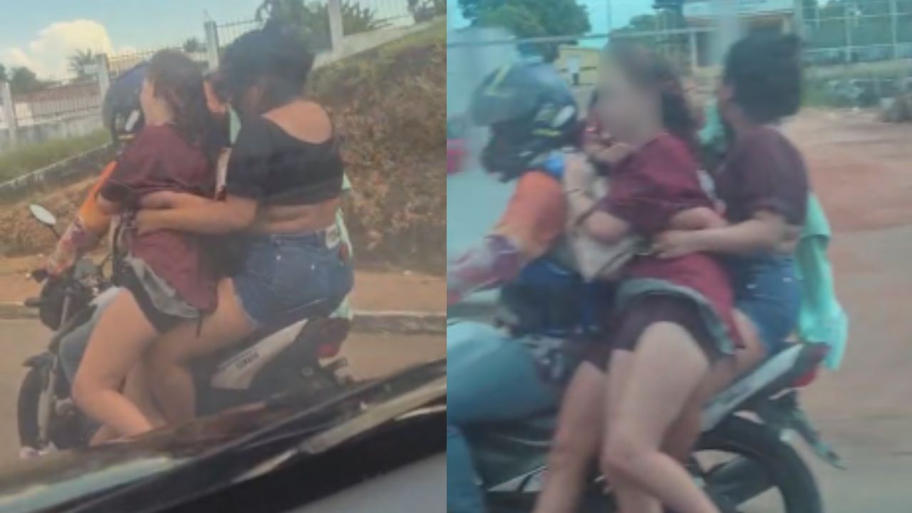 A cena foi registrada em uma via urbana do município e mostra o condutor aparentemente trabalhando de forma normal, apesar da superlotação visível. As três mulheres ocupam o espaço da garupa, apertadas e sem qualquer tipo de equipamento de segurança adicional, como capacetes.