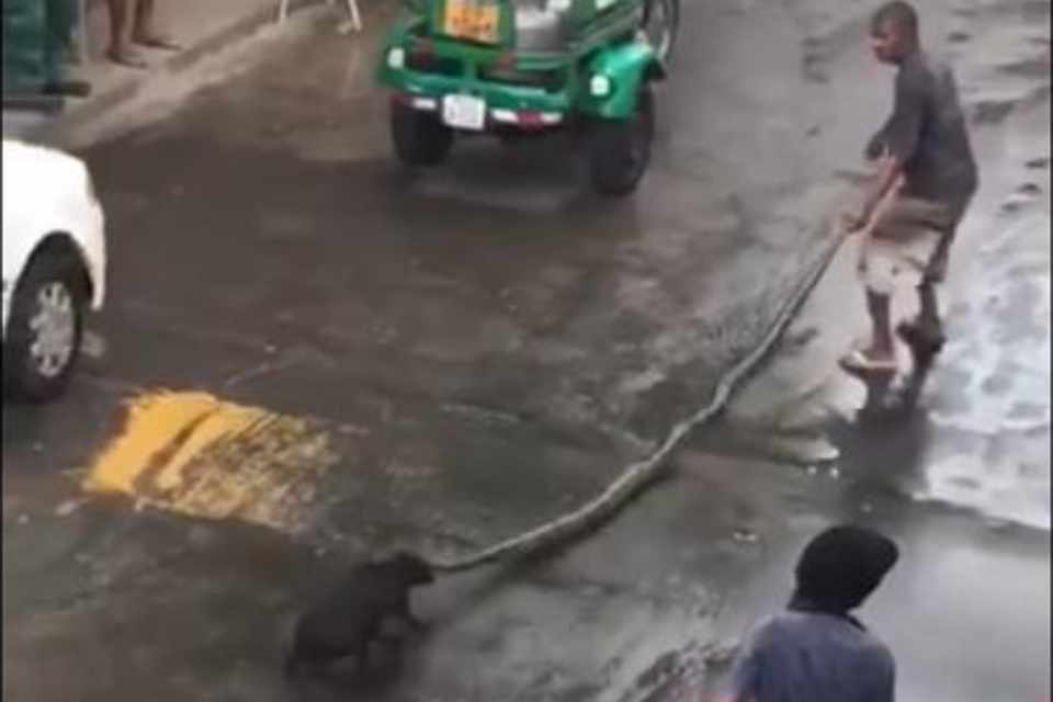 Salvador| Um cachorro foi salvo após ser atacado por uma sucuri de 4 metros, em Salvador, na Bahia. Um homem o salvou utilizou um pedaço de cano para conter a cobra.
