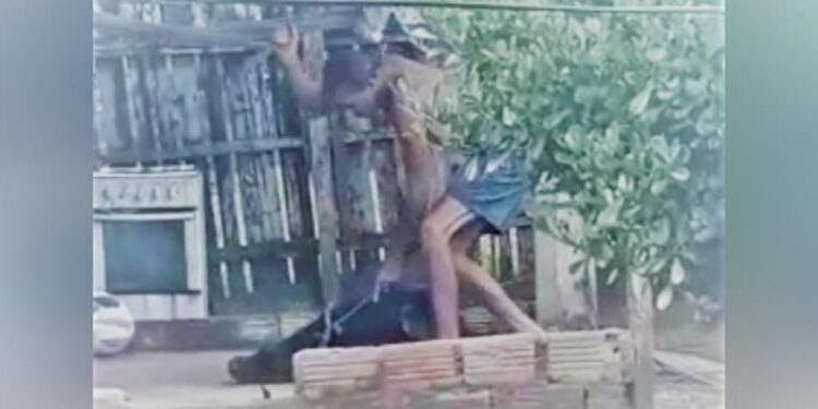 PARÁ | Na última segunda-feira (28), um homem foi flagrado espancando um cachorro, após ele ter comido um papagaio, na comunidade Tabocal, em Santarém, oeste do Pará.