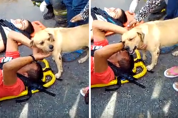 Manaus – Após a colisão, a mulher de um dos passageiros envolvidos no acidente foi até o local, onde os bombeiros prestavam os primeiros socorros às vítimas. Acompanhando a esposa estava Lucas, o cachorro da família, que entrou em desespero ao ver o dono imobilizado pela equipe de resgate.