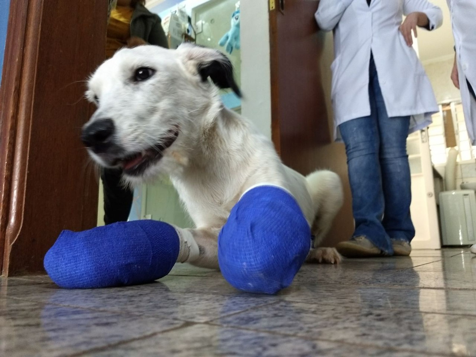 Araraquara = Um cachorro vira-lata de 7 meses ficou gravemente ferido após ter as duas patas dianteiras mutiladas, no sábado (21), em Araraquara (SP). O caso repercutiu nas redes sociais e a Polícia Civil investiga o caso como maus-tratos. As donas do Pingo agora buscam ajuda para manter o animal internado em uma clínica veterinária.