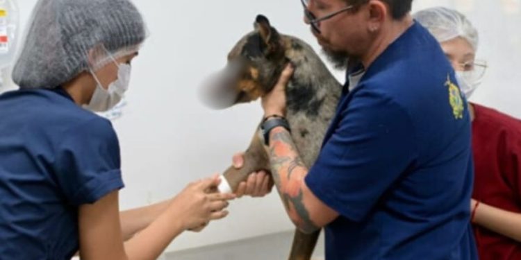 Após a agressão, o cão foi levado pelo tutor até o Hospital Público Veterinário do Amazonas (HPVet-AM), onde recebeu atendimento de emergência. A equipe médica realizou avaliação clínica e iniciou o tratamento intensivo para conter os danos causados pelo ferimento.