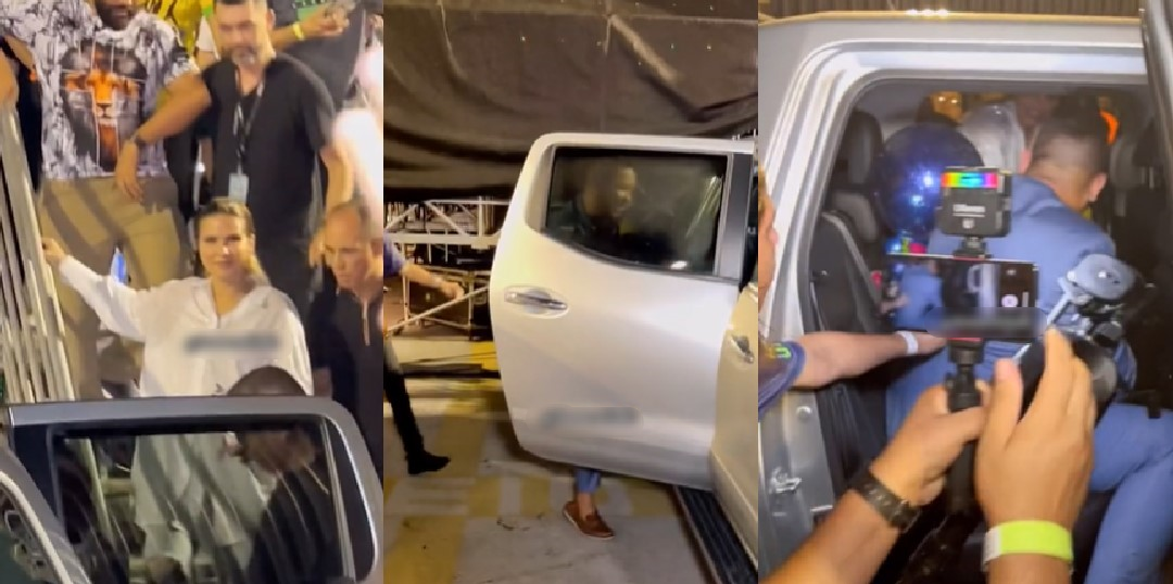 Nas imagens, ela está indo embora quando o repórter com um microfone na mão invade o carro que a levaria para o hotel. Uma pessoa da equipe tenta impedir, mas ele entra mesmo assim e diz que Aline é acessível e vai conversar com ele uns minutos.