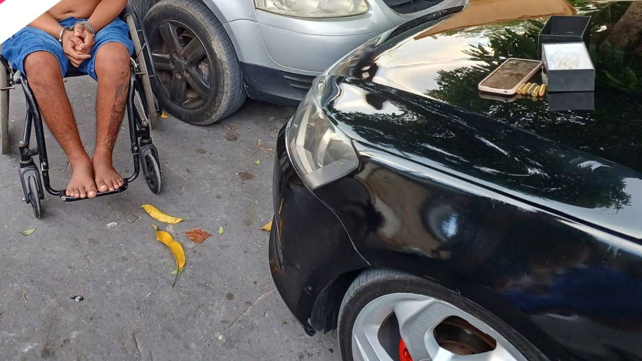 MANAUS (AM) – Policiais civis do 1º Distrito Integrado de Polícia (DIP) prenderam em flagrante, nesta sexta-feira (20/10), por volta das 15h30, Diemis de Oliveira Lima, 23, que é usuário de cadeira de rodas, em posse de arma de fogo, drogas e munições, no bairro Cidade Nova, zona norte da capital.