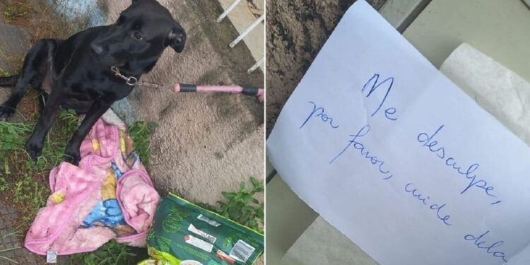 Ao g1, Lais Monfrinato conta que ficou surpresa ao encontrar a cadela no portão de sua casa junto com um cobertor, ração e o bilhete, que dizia “me desculpe, por favor, cuide dela”.