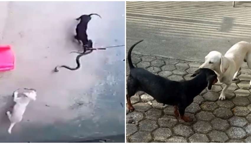 De acordo com o The Sun, as imagens que mostram os cães lutando contra a serpente foram gravadas na última sexta-feira (19). No vídeo é possível ver que um deles, a daschund branca Miley, avança contra a cobra primeiro e a arrasta para a entrada do imóvel. O outro, o mais escuro, chamado de Moxie, a ajuda no que parece ser um trabalho de equipe.