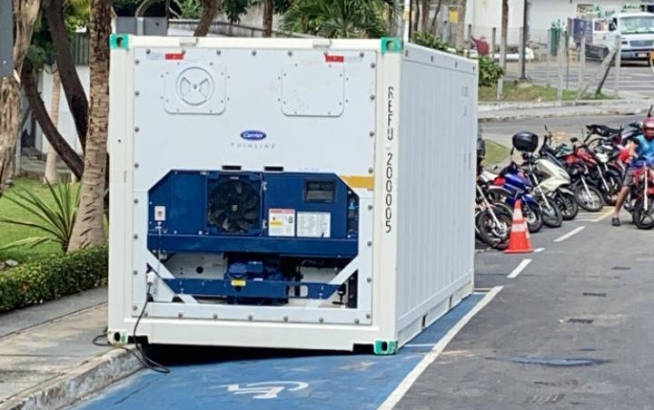 MANAUS-AM| Nesta quinta-feira (31), câmaras frigoríficas, começaram a ser reinstaladas no Hospital Pronto-Socorro 28 de Agosto. Os containers instalados são para armazenar os corpos de mortos pelo coronavírus e foram usados também no pico da pandemia no Amazonas, durante o mês de abril.
