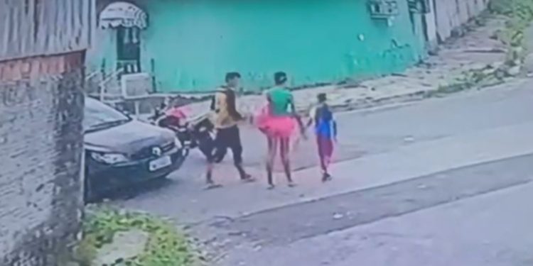 MANAUS (AM) – Uma câmera de segurança registrou na segunda-feira (9) um bandido que roubou a mochila de uma criança que voltava da escola com a mãe. O caso ocorreu na rua 26, no Manoa, zona norte de Manaus.