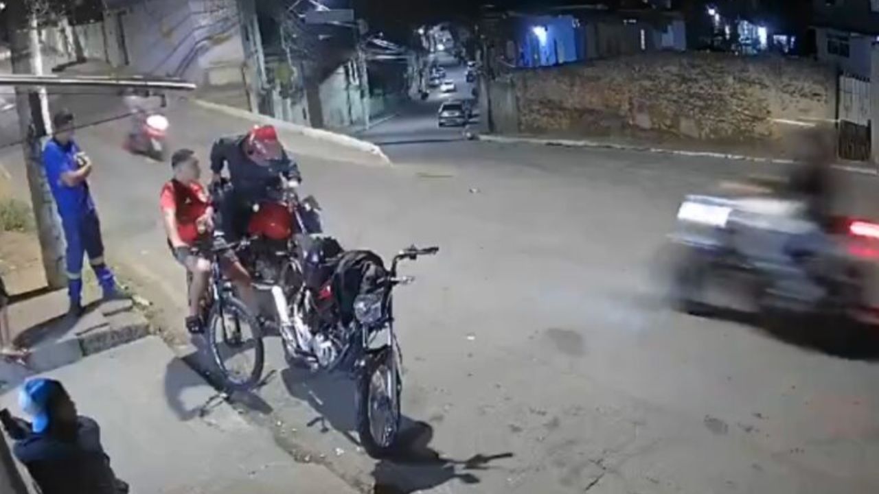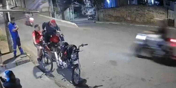 Uma câmera de segurança registrou o momento em que os dois, que pilotavam em sentidos opostos, se chocam brutalmente na rua. O resultado: um morreu e outro está em estado gravíssimo no hospital.
